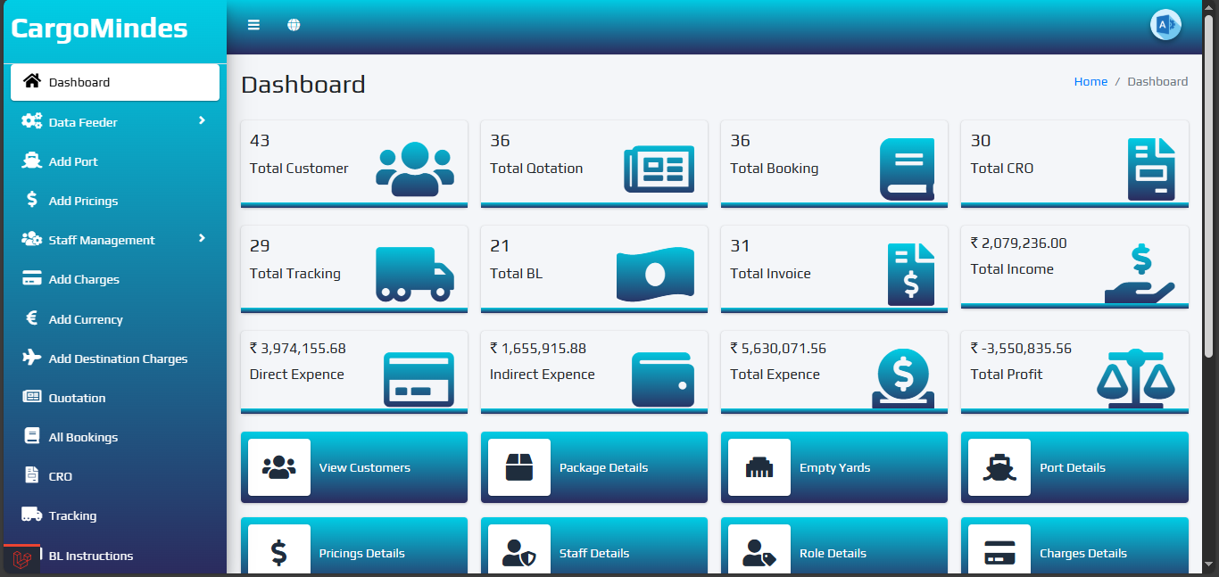 Logistics & Freight Forwarding Management system to manage full cargo arrivals, container movement, booking, invoicing, receipts and real-time customer tracking.